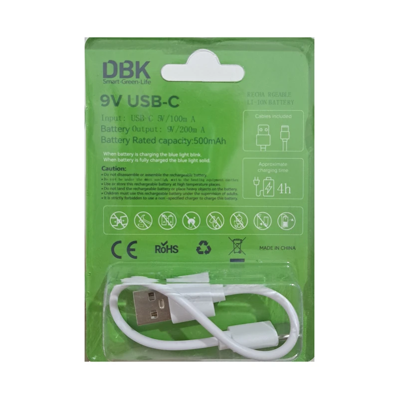 باتری کتابی شارژی لیتیومی ۹ ولت دی بی کی با کابل DBK-USB-C